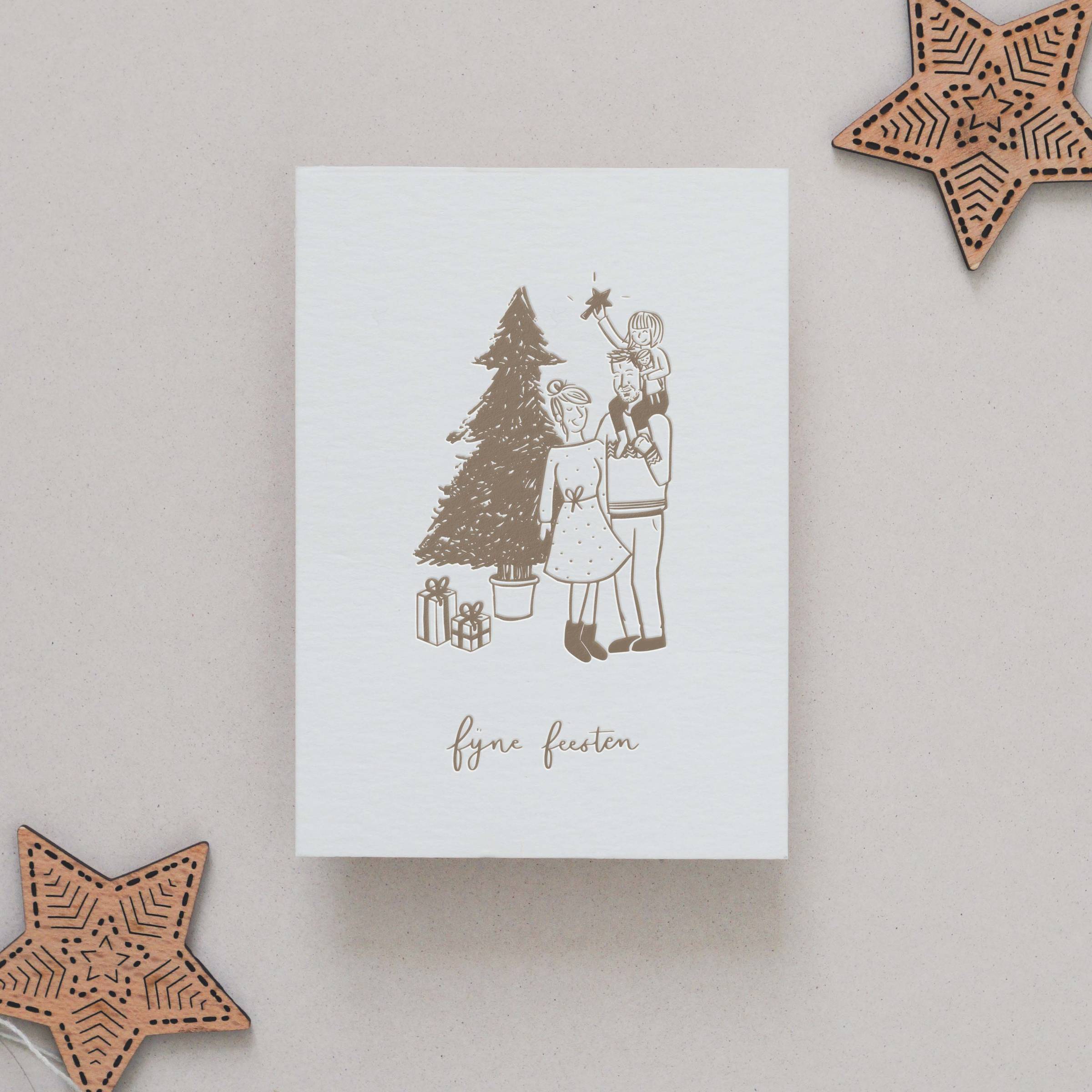 Op een kerstkaartje op maat staat jullie gezin centraal. Met mijn liefde voor illustreren en de prachtige letterpress druktechniek, maken we er samen iets bijzonders van. Plezier, liefde en kwaliteit gegarandeerd. Wees er zeker van: dit kaartje zal nog lang op de kast staan bij je vrienden en familie. En voor jezelf is de illustratie op posterformaat een cadeautje op zich!